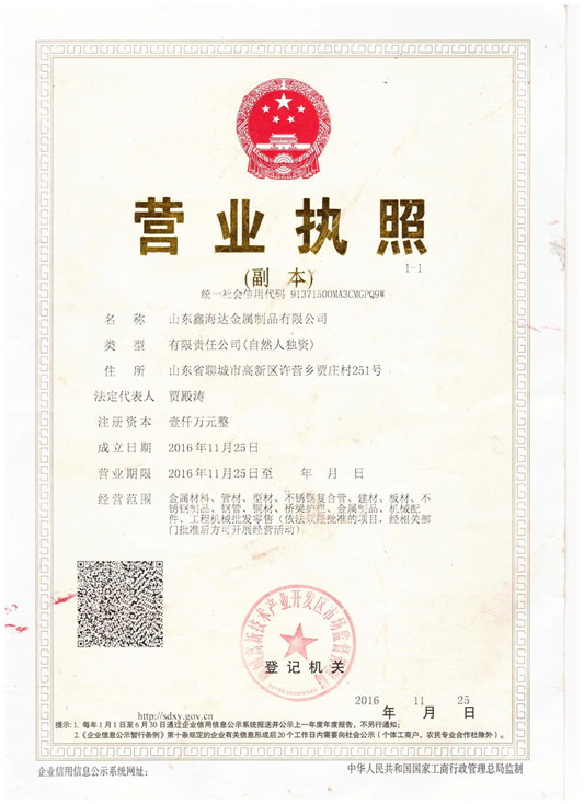 • 山東鑫海達(dá)金屬制品有限公司